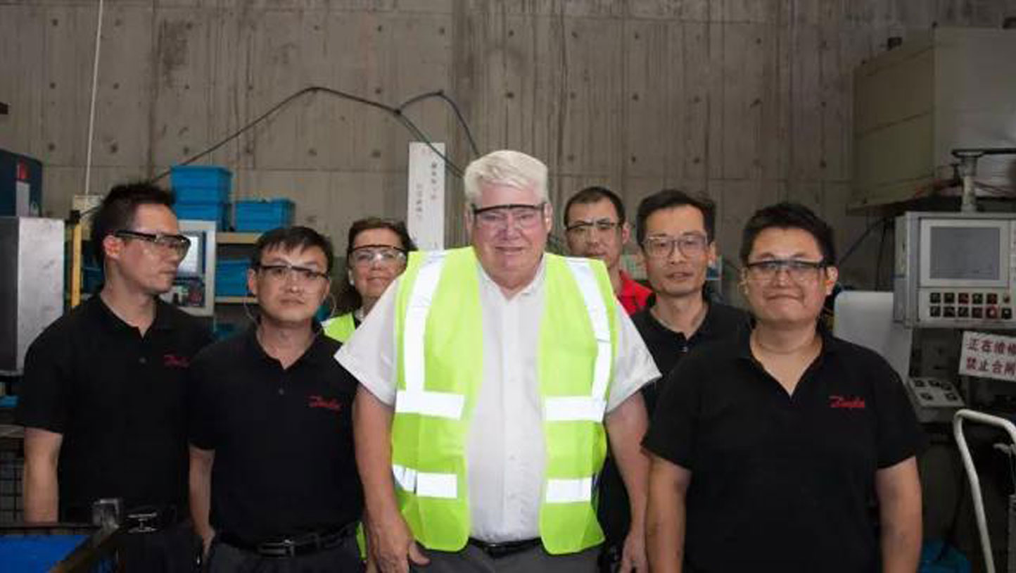在視察期間,柯勞森先生聽取了丹佛斯動力系統中國區總裁周時平及其團隊成員關于丹佛斯動力系統事業部在中國發展現狀的介紹。在參觀工廠時,他詳細了解了生產運行,并關切詢問了員工的工作和生活情況,真稱得上是一位暖心的主席呢~