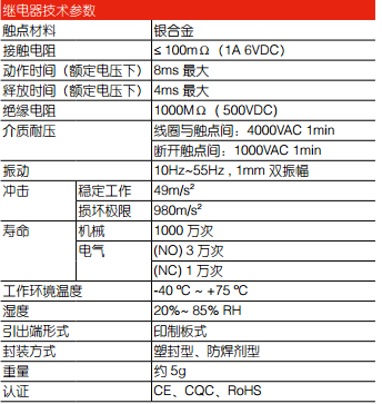 ● 1CO觸點(6A),容量更大,寬度僅為6mm