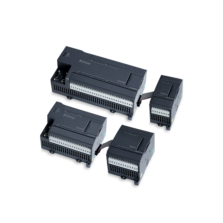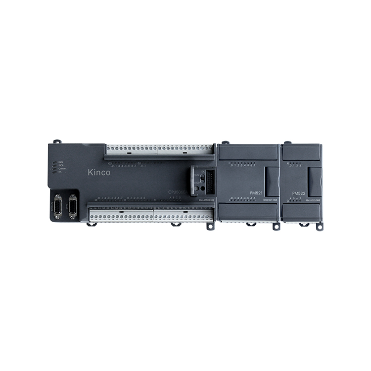 K5系列PLC是我公司K3系列的升級產品,貼近市場需求,提供更豐富的功能和更高的性能,是高性價比的一體化小型可編程控制器。K5在CPU本體能夠提供高速脈沖輸入、高速脈沖輸出、CANOpen主站、多個RS485通信口、集成模擬量輸入和模擬量輸出通道等功能,另外配合種類豐富的擴展模塊,能夠全面滿足小型設備和過程控制的基本需求。 K5結合Kinco 經濟型人機界面、伺服驅動、變頻器,為客戶提供簡單易用的自動化解決方案。